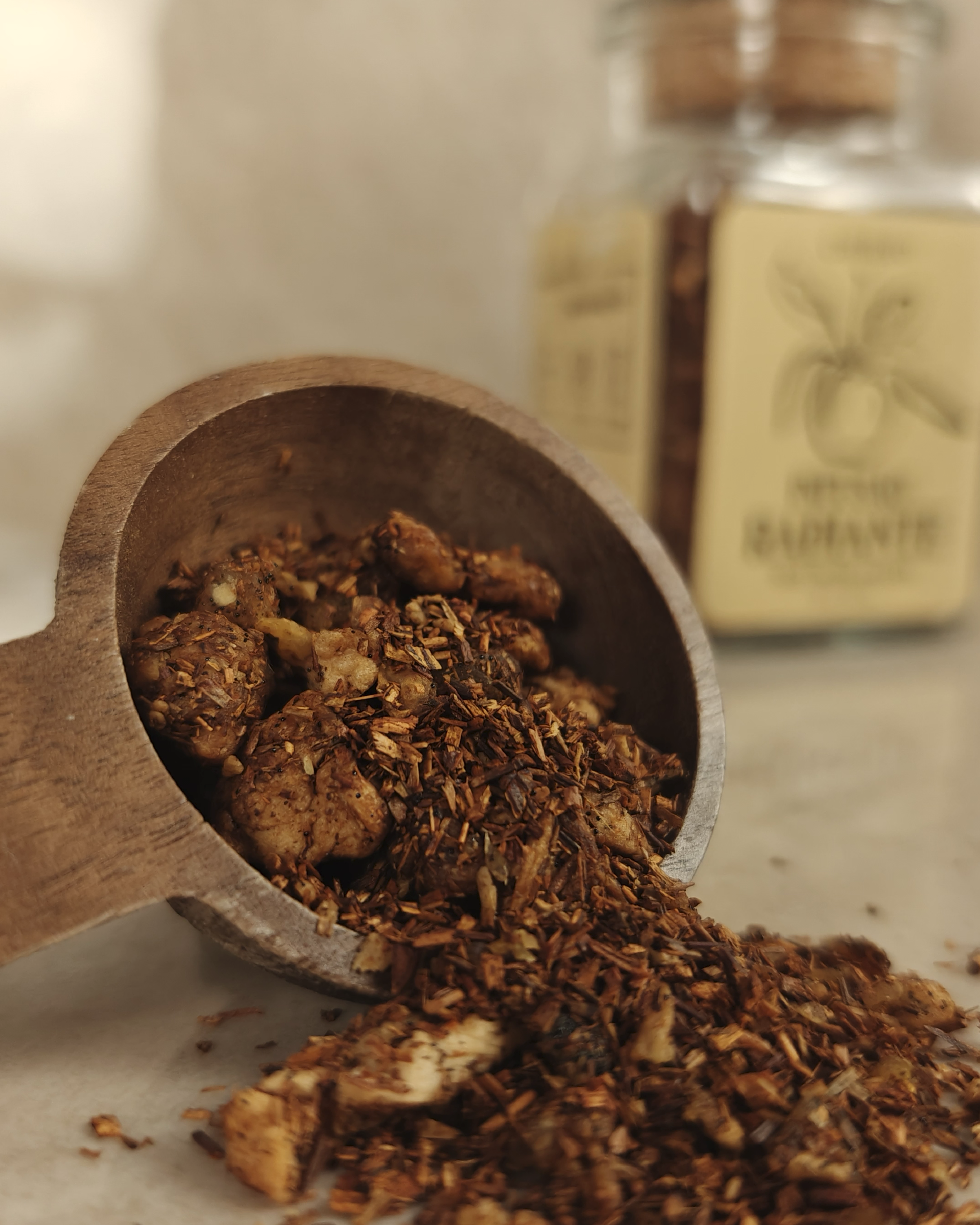 Rooibos, Ananás, Maçã, Gengibre, Baunilha.